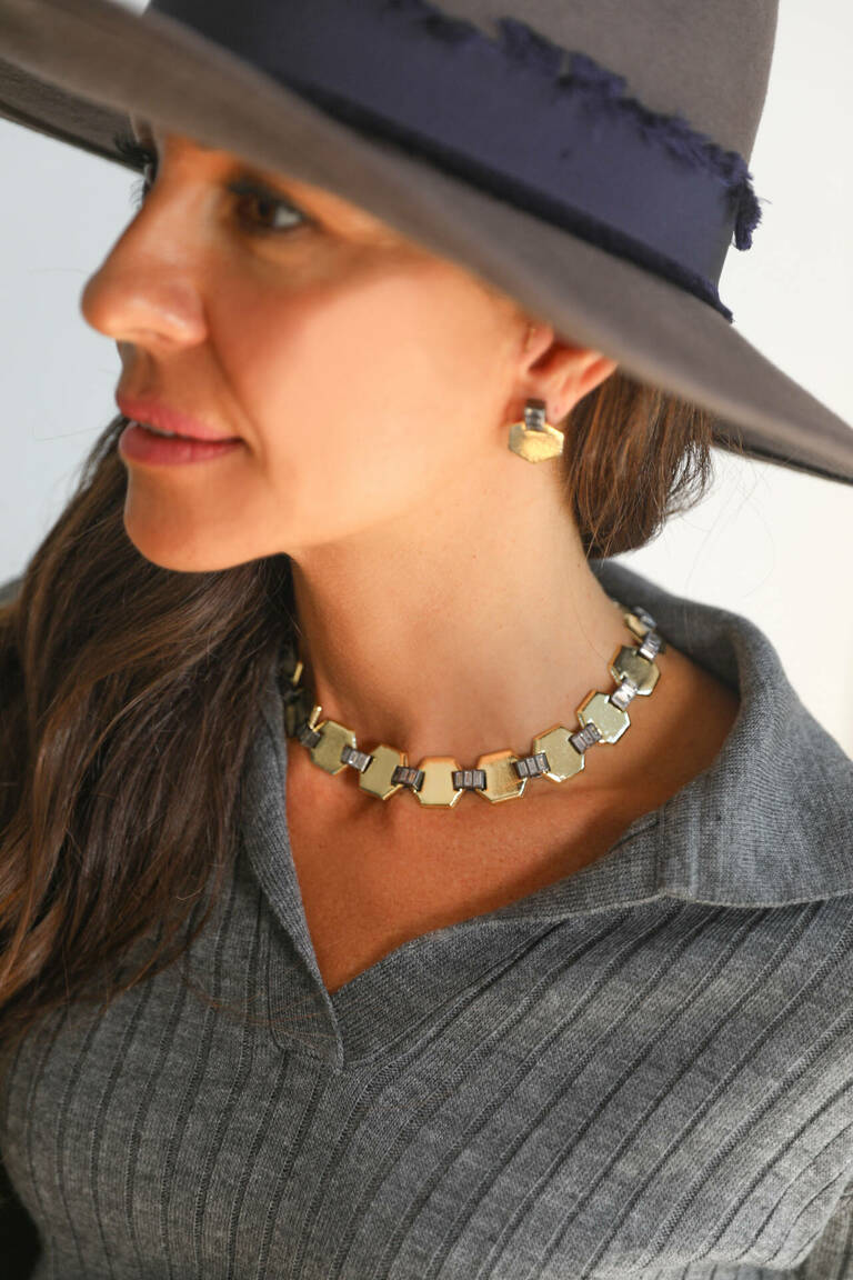 Altıgen formlu baget ara parçalı kolye