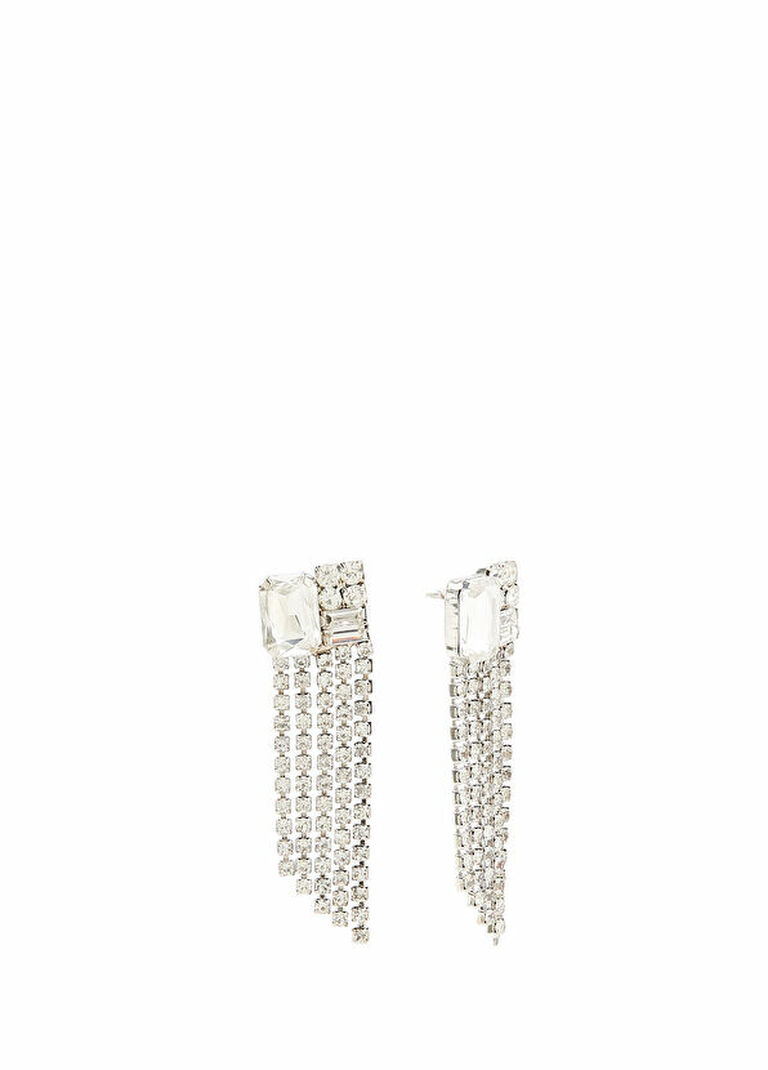 Kristal yuvarlak ve baget kesim taşlı küpe