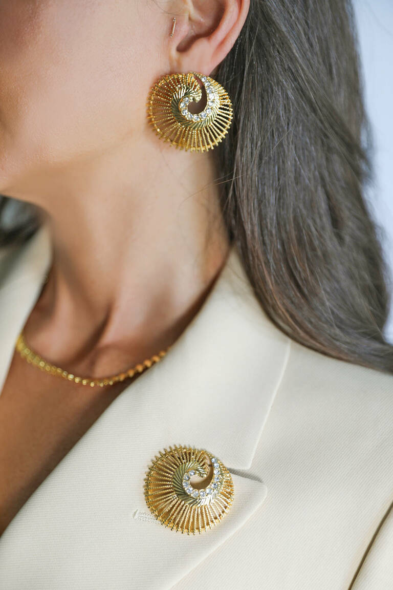 Spiral formlu kristal taşlı broş