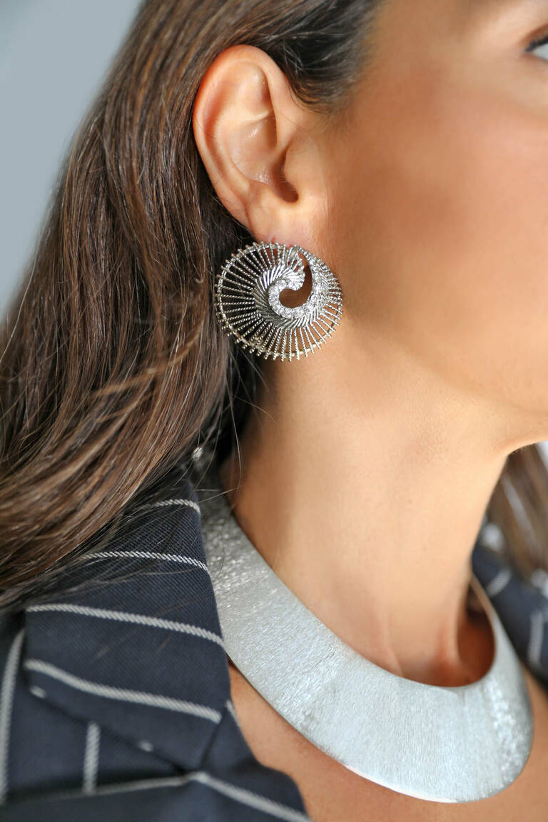 Spiral formlu kristal taşlı küpe