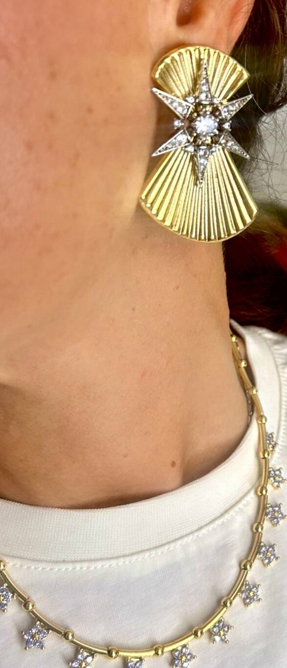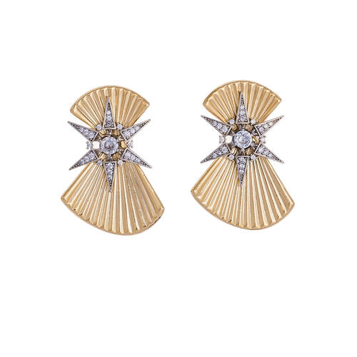 Yelpaze formlu üzeri kristal taşlı yıldızlı küpe