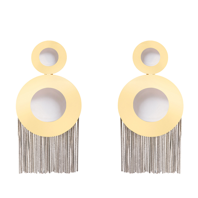 Düz plaka üzeri bombe formlu püsküllü küpe