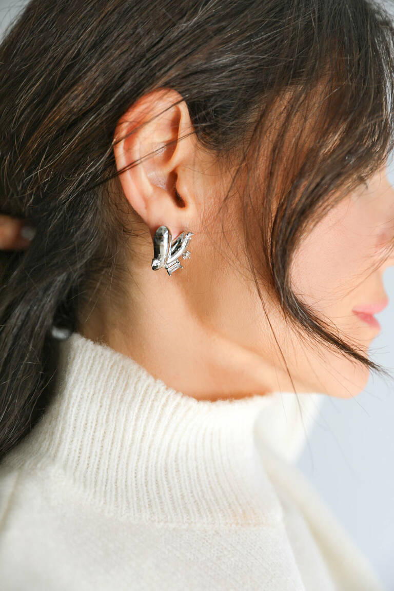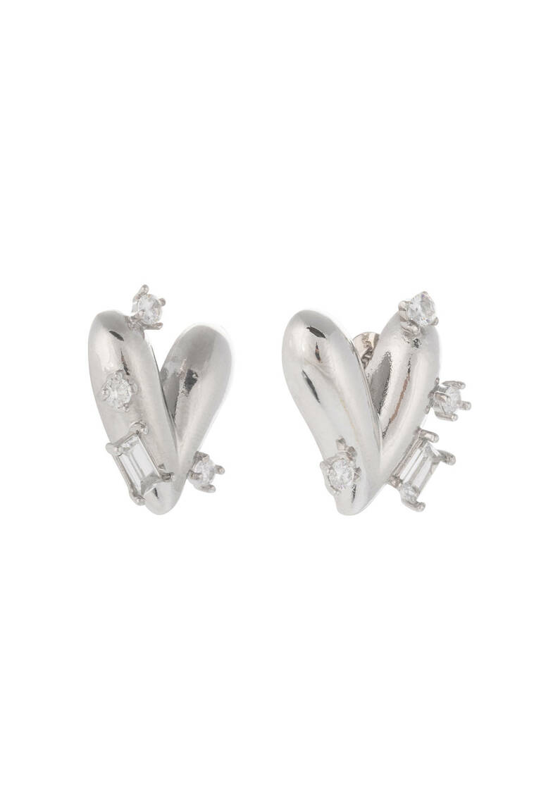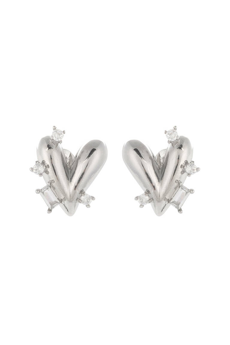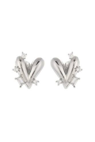 Kalp formlu kristal ve baget taşlı asimetrik küpe