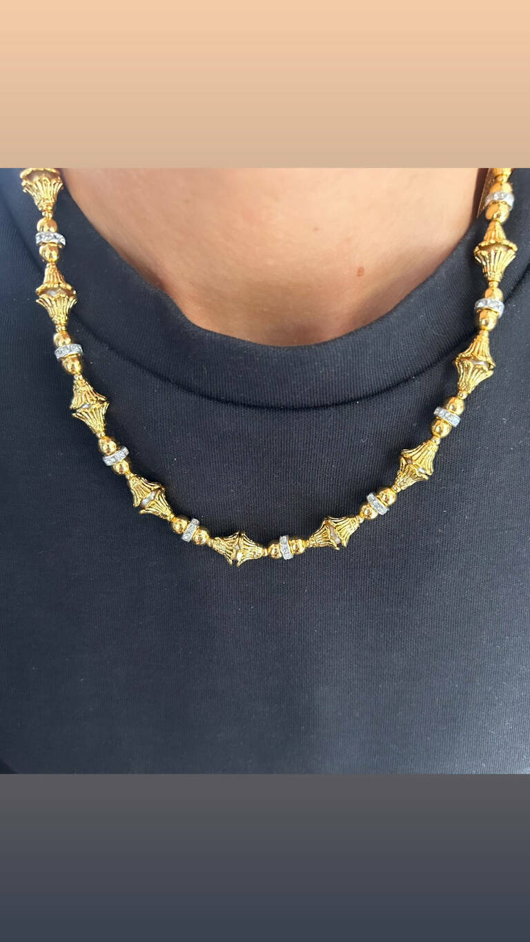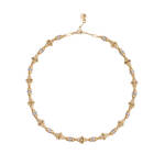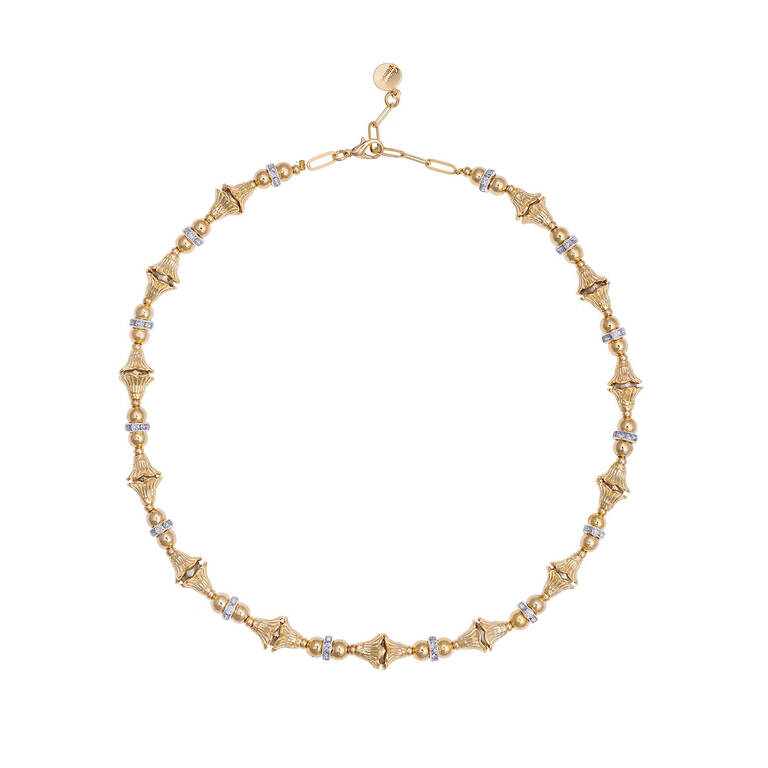 Çiçek formlu incili rondela taşlı kolye