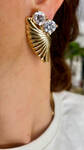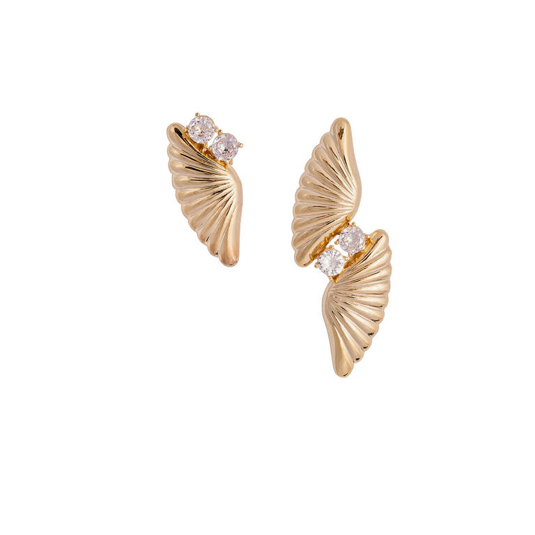 Kanat formlu beyaz kristal taşlı küpe