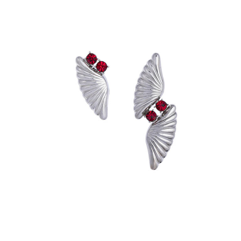 Kanat formlu bordo kristal taşlı küpe