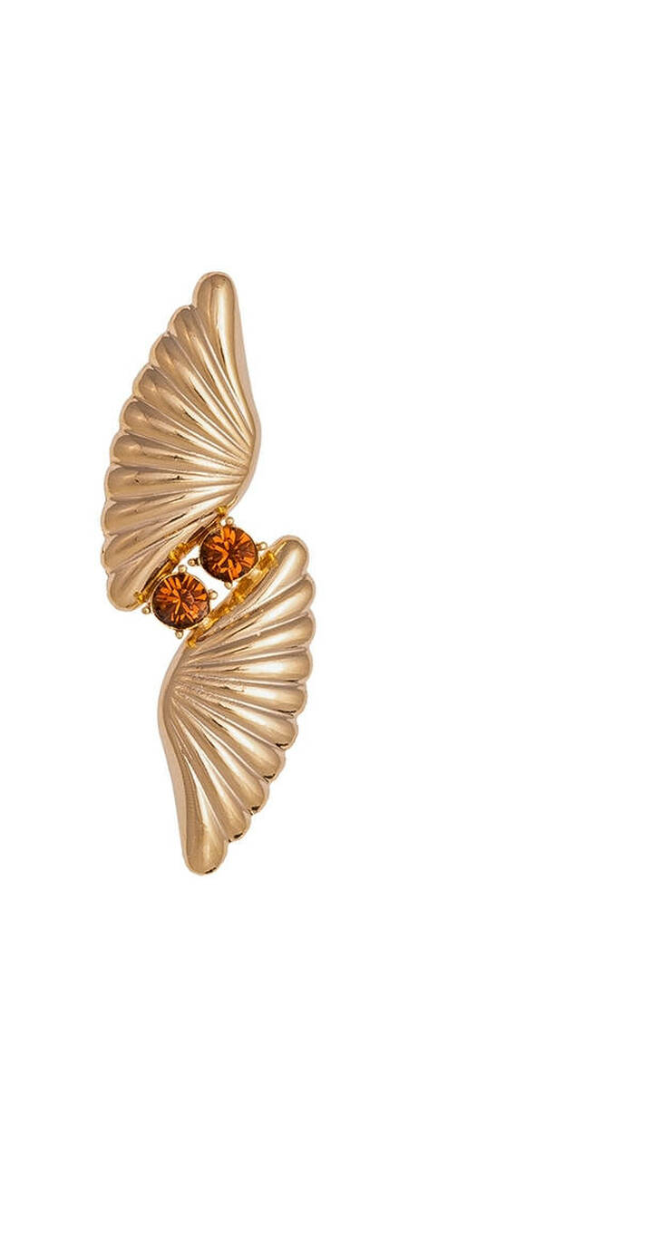 Kanat formlu kahve kristal taşlı broş